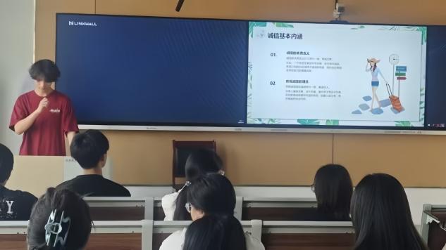 在案例警示的基础上,班会进一步引导学生深度探讨诚信的价值内涵与践行路径。班会强调,“诚” 为立身之本,“信” 为筑梦之基:在学业上,需坚守独立思考、严谨治学准则,坚决抵制各类学术不端行为;在生活中,要做到言出必行、一诺千金,重视个人信誉积累;在未来职场中,更需恪守契约精神、坚守职业操守,以真实能力与可靠品格赢得尊重与发展机遇。班会明确提出,唯有坚守言行一致、信守承诺的原则,方能在人生道路上行稳致远,在个人成长与社会贡献中实现理想抱负。