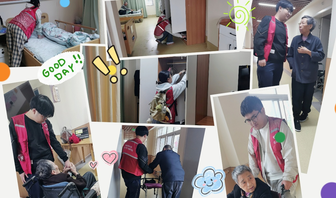 活动全程,细节关怀无处不在。志愿者们分散行动,有的帮老人整理床铺、检查房间安全隐患;有的搀扶老人在园区散步,倾听他们的过往故事;还有人主动为老人接温水、擦眼镜,贴心举动让老人们频频称赞。