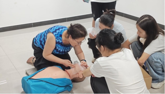 “纸上得来终觉浅,绝知此事要躬行”,真正掌握急救技能离不开亲身实践。在分组实操环节,参训学员借助模拟人完整演练了从环境安全判断、患者意识评估,到心肺复苏操作、AED 设备使用的全流程急救步骤。指导老师阎振瑛等人全程跟进,采用“形成性评价”方式,对学员操作中的细节问题即时反馈、精准纠偏,让正确的急救动作深植于心。这一环节充分体现“以学生为中心” 的教育理念,让学员在近乎“实战”的场景中巩固技能,深刻体会到生命的脆弱与珍贵、施救者的责任与使命,从而从内心建立起“敢于施救、善于施救”的自信与担当。