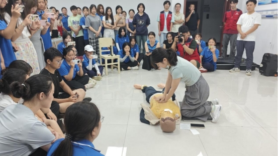 为破解“理论丰满、实践骨感”的普遍困境,本次活动精心设计了模拟演示环节。来自急救中心的专业人员与阳光天使急救协会的学生骨干,联袂进行了标准化的流程演示。不仅展示正确动作,更通过解构式教学,揭示了动作背后的科学依据:为何要呼唤判断意识?为何按压频率需维持在100-120次/分?通过“1001、1002”的计数方式有何时间管理意义?演示极大地提升了技能传递的精准度与可复制性。