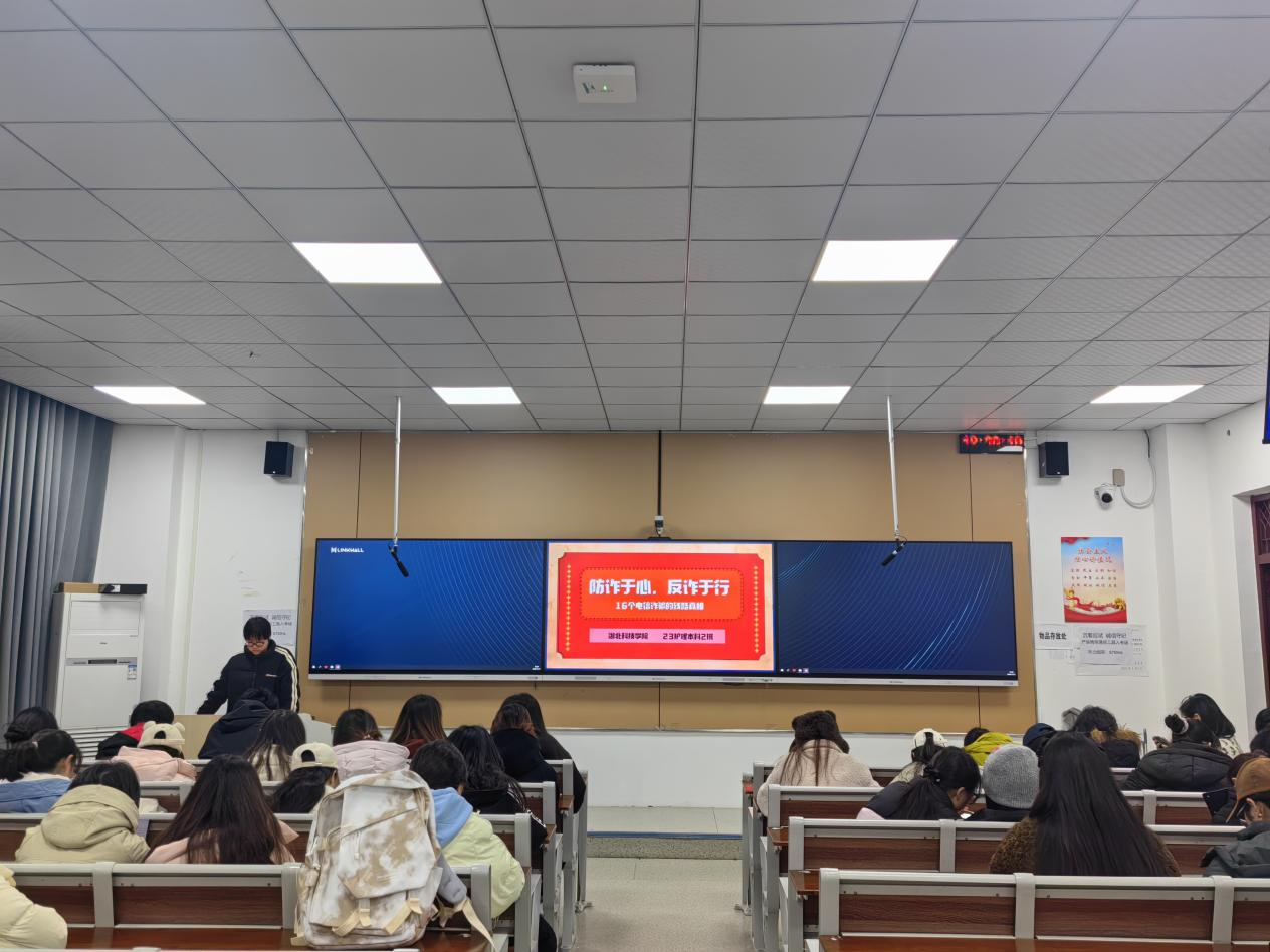 为切实提升全院学子的电信诈骗防范意识与精准识别能力,筑牢校园安全防护网,2025 年 12 月 21 日,湖北科技学院公共卫生与健康学院以 “防诈于心,反诈于行 ——16 个电信诈骗的残酷真相” 为核心主题,组织开展了系列主题班会活动,为同学们带来了一堂生动深刻的反诈警示教育课。