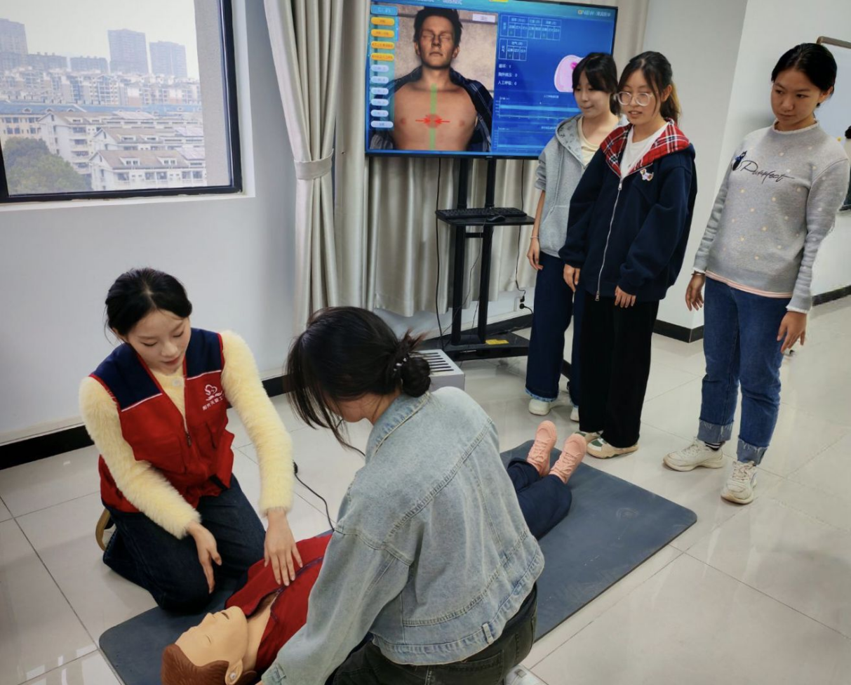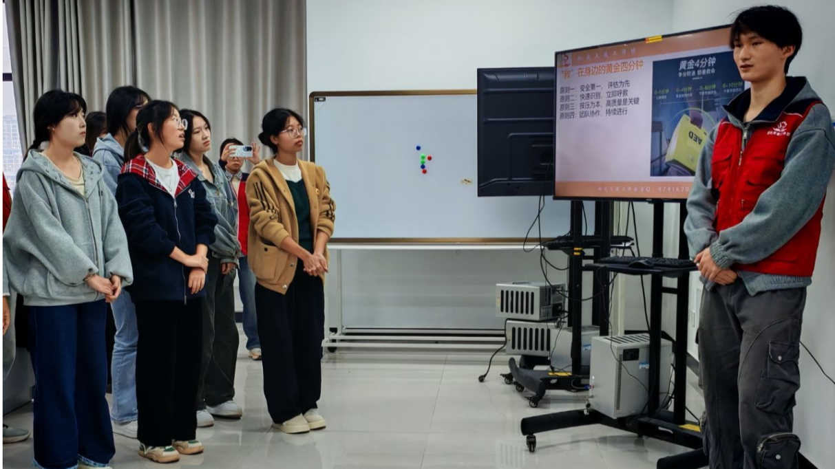 培训内容紧密贴合校园常见应急场景,以 “CPR 与 AED 协同施救” 为核心展开。讲师团队围绕心跳呼吸骤停的快速识别方法、“黄金 4 分钟” 救援时间窗的重要性、胸外按压标准、人工呼吸操作要点等关键知识模块进行细致讲解,既帮助学员夯实急救理论基础,又引导大家理解急救操作背后的医学原理,为后续实操训练做好充分铺垫。