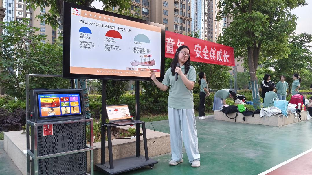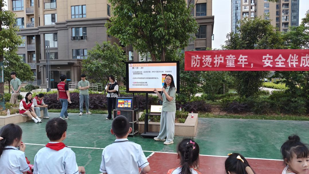 2025年4月18日,公共卫生与健康学院团委学生会、阳光天使工作坊和阳光天使急救协会联合承办的"防烫护童年,安全伴成长"主题实践活动走进始峰悦府小区。活动通过知识讲解、情景模拟、互动游戏等形式,向社区儿童普及烧烫伤预防与急救知识,帮助孩子们掌握实用的安全技能。