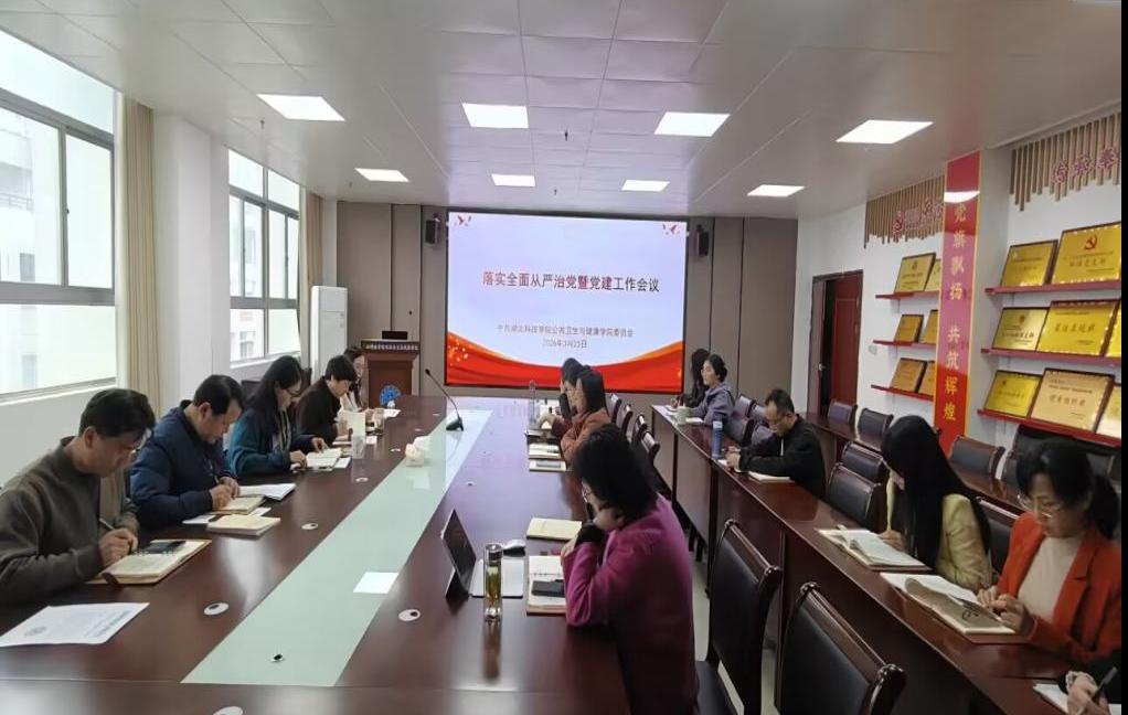 (通讯员:娄佳奡 审稿人:饶玉霞)3月23日上午,公共卫生与健康学院在医药楼3-428会议室召开2026年落实全面从严治党专题会议暨党建工作会议,学院党委委员、领导班子成员(非党委委员的行政班子成员)、各党支部书记及教研室负责人、三办负责人和全体辅导员参会,会议由学院党委副书记周立勇主持。